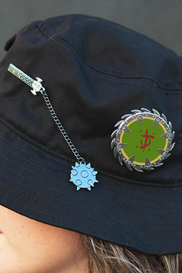 Wear these medieval melee essentials with this DOOM: The Dark Ages Enamel Pin Set! Featuring the Shield Saw with spinning blades and the Flail with the spiked ball attached to a real chain.