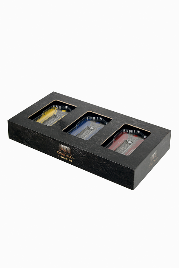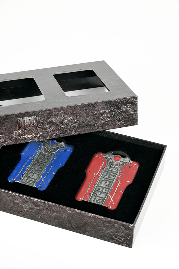 The DOOM Slayer leaves no door unopened, and no demon alive! Unlock a new dimension to your collection with the DOOM: The Dark Ages Keycard 3-Pack. It collects all three versions of the keycards you can find in the game. Put them on display in their windowed presentation box or hold them in your hands to admire their details and feel their heft.