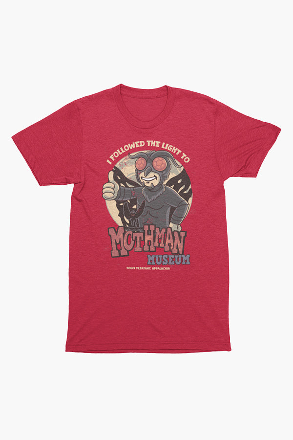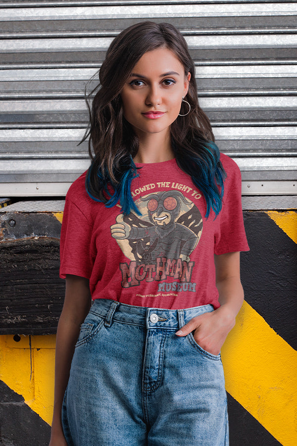 So your search for the Mothman has led you here, on a pilgrimage to Point Pleasant where the devout and curious converge to learn all about the Winged One… and collect souvenirs—just like the Fallout® Mothman Museum Tee!