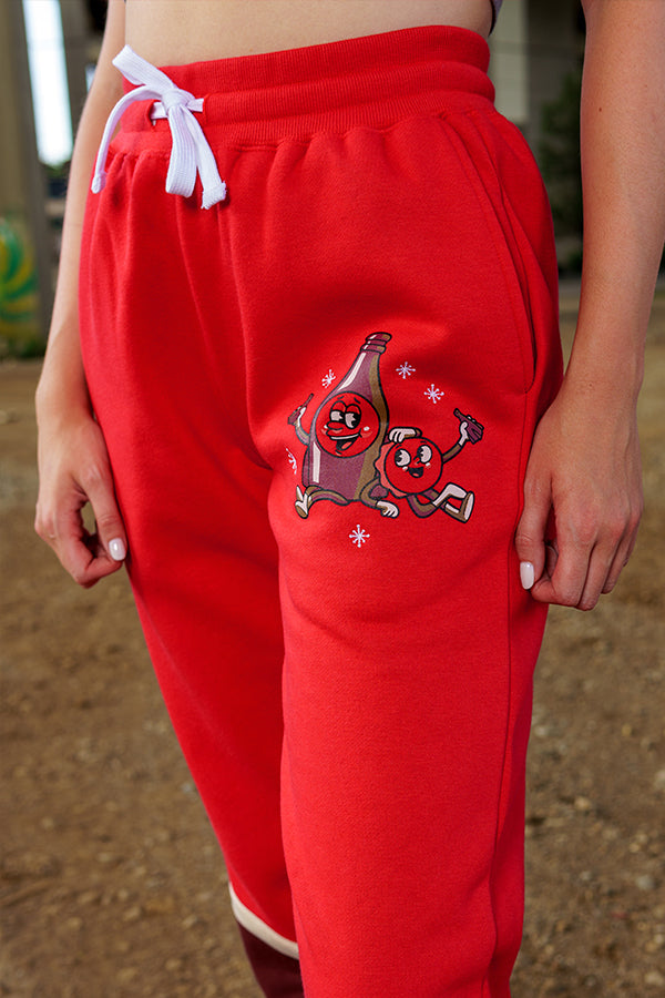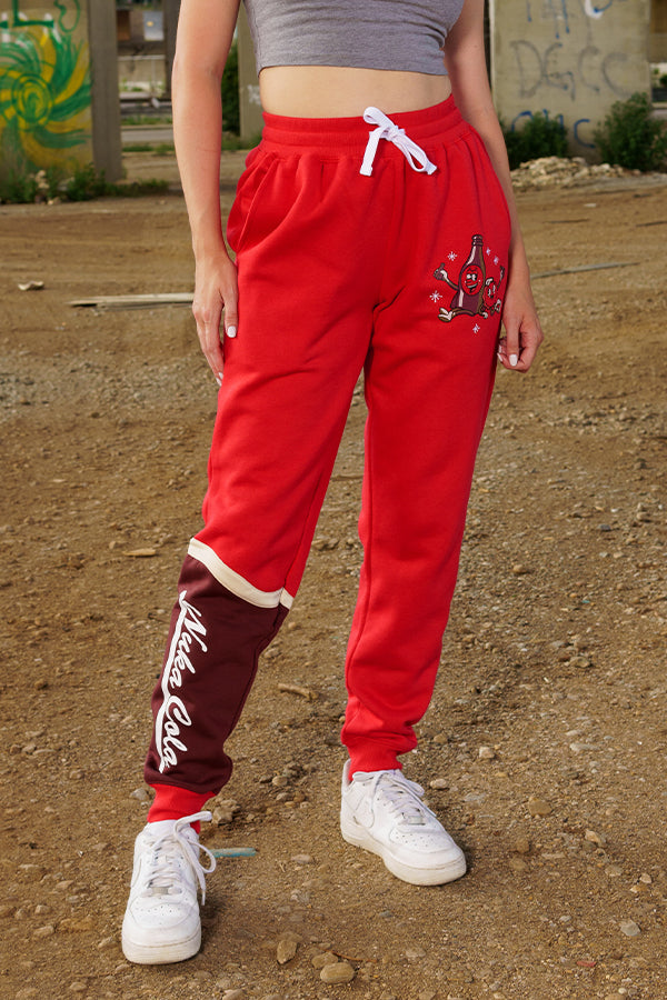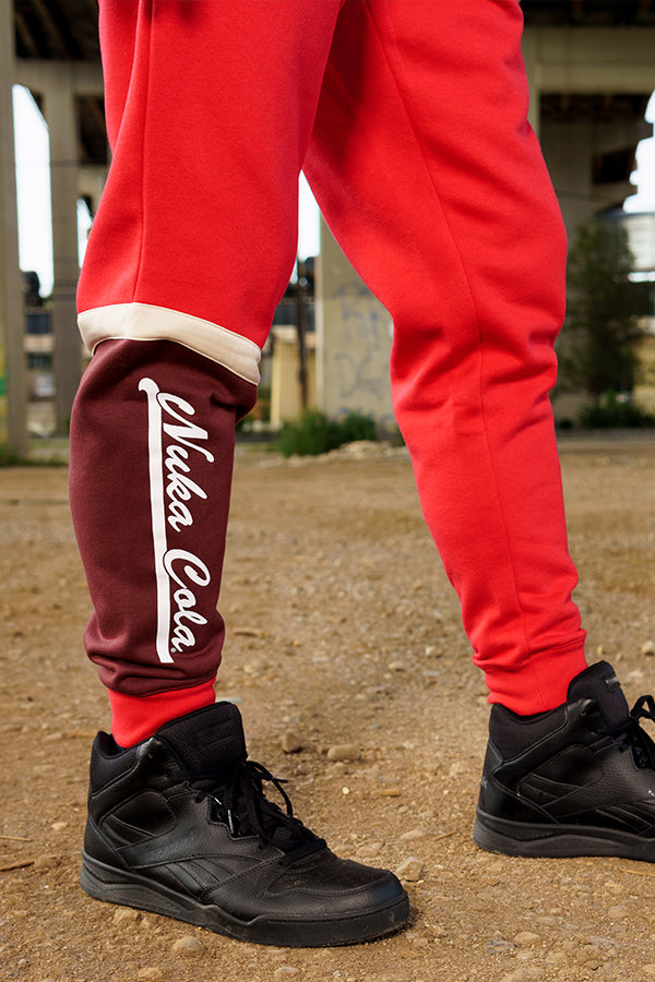 Let Bottle and Cappy join you as you lounge or get active in your Fallout® Nuka Break Joggers! The artwork on this pair features the two mascots relaxing with their Nuka-Cola bottles—a subtle reminder to take breaks and enjoy life, preferably with a cold drink in hand.